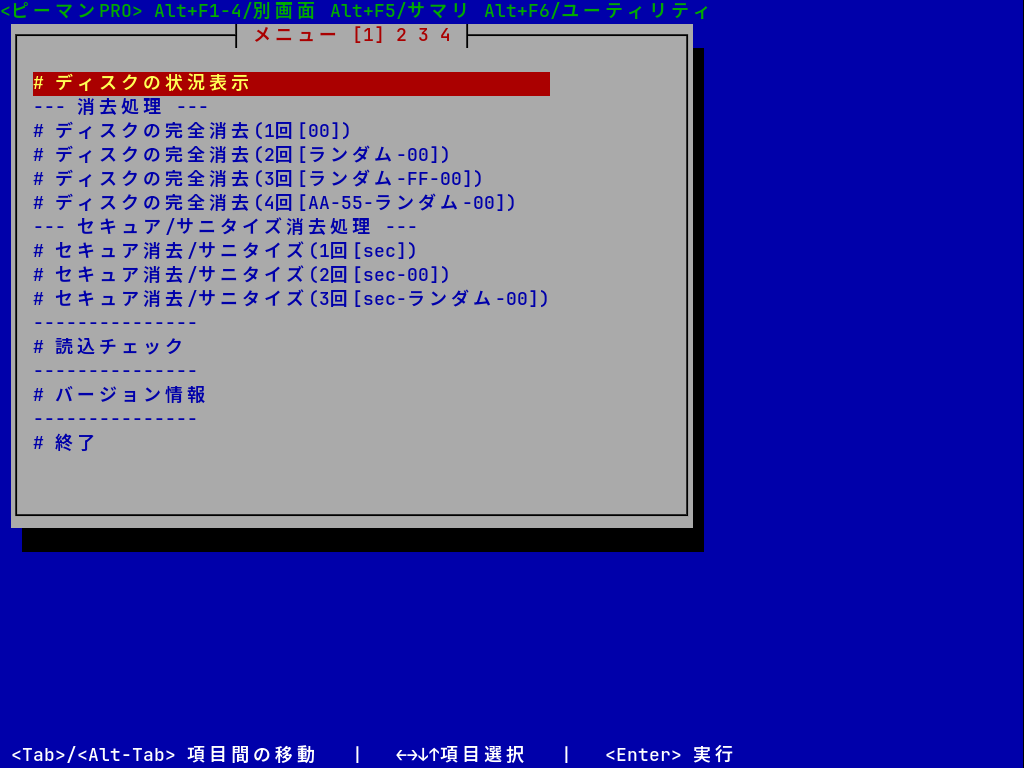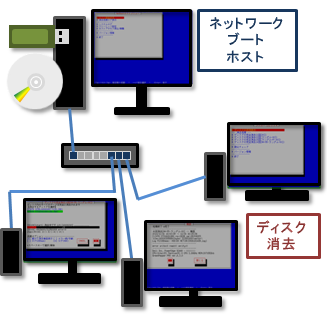 CD/USBメモリ起動、ネットワークブートによる、消去プログラム